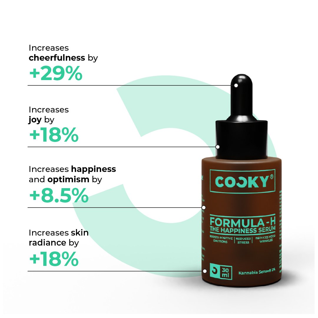 Formula H reduces stress, boosts positive emotions like happiness, optimism and joy when massaged on the face