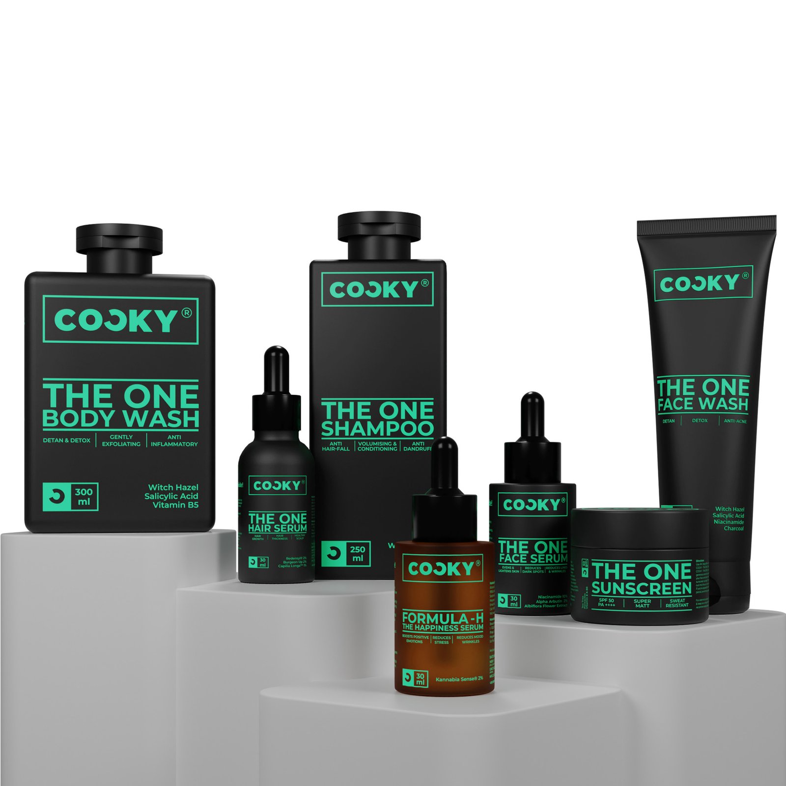 The One Body Wash > The One Face Wash > The One Face Serum > Formula H, The Happiness Serum > The One Sunscreen