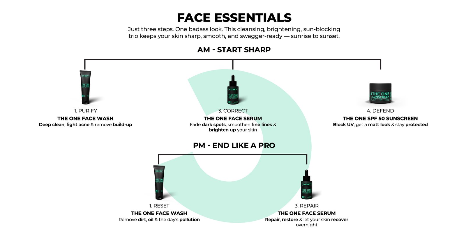 Expect skin that’s clean, bright, and protected. You will notice less dullness, fewer breakouts, and a confident, Cocky glow every day.